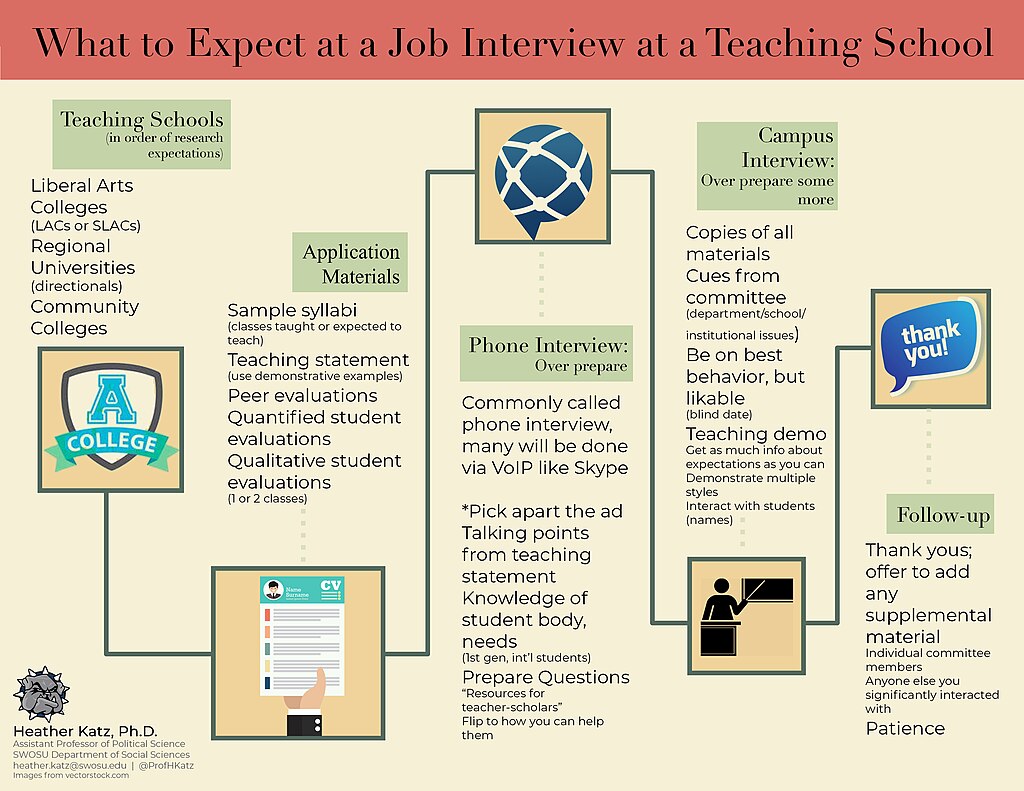 Below are a few videos that I picked out of hundreds that I felt might be helpful to this kind of academic interview. If you can, try to have FUN during the interview. Being personable is a very helpful attribute when you are applying to teach others new skills.